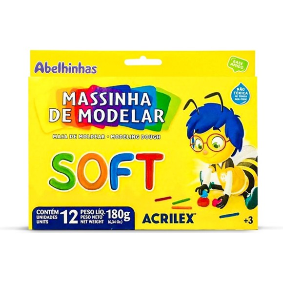 A Massinha de Modelar 12 Cores Soft da Acrilex é perfeita para liberar a criatividade em trabalhos de modelagem. Super macia e fácil de manusear, ela não mancha as mãos e pode ser reaproveitada várias vezes, garantindo diversão e aprendizado sem fim. Ela é fabricada à base de amido, o que a torna segura e não tóxica, ideal para crianças e adultos. Sua textura macia facilita a modelagem de diversas formas e figuras, proporcionando uma experiência agradável e criativa.