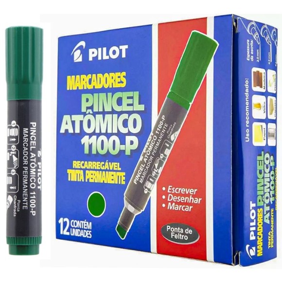 O Pincel Atômico 1100-P Verde - Caixa com 12 da Pilot é um verdadeiro ícone entre os marcadores no Brasil, sendo um dos primeiros produtos desenvolvidos na fábrica da PILOT no país. Lançado em 1958, este marcador se tornou amplamente utilizado por brasileiros em diversos contextos, especialmente em trabalhos manuais na escola e no trabalho.