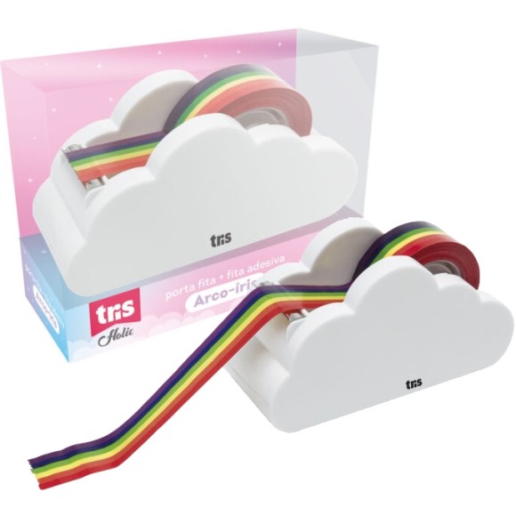 O Porta Fitas Holic Dreamy Arco-Íris da Tris une praticidade e diversão com um design encantador em formato de nuvem. Ideal para deixar sua mesa de estudos, escritório ou espaço criativo mais alegre e organizado, ele suporta fitas com largura de 18mm a 22mm, proporcionando versatilidade no uso. Acompanha uma fita adesiva colorida com padrão arco-íris que adiciona um toque lúdico e criativo em trabalhos manuais, scrapbook ou atividades escolares. Fabricado com materiais resistentes e duráveis, combina funcionalidade e estilo, tornando a hora de aplicar fitas muito mais prazerosa e divertida.
