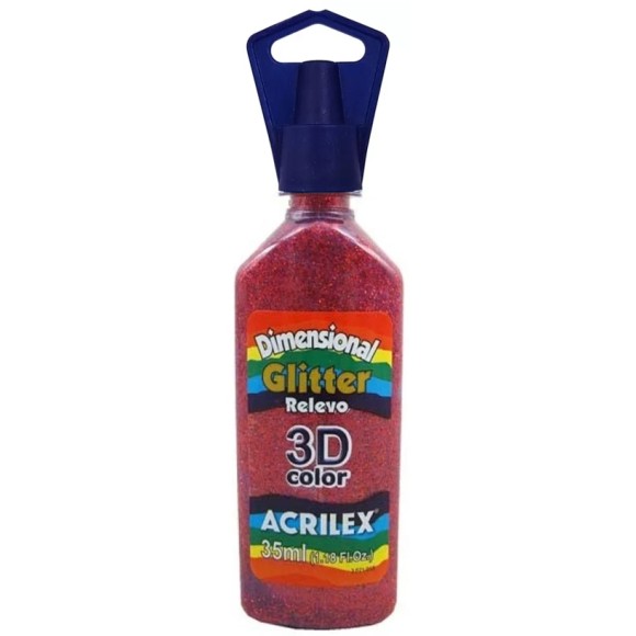 A Tinta Dimensional 3D Relevo Glitter Vermelha 35ml da Acrilex é ideal para ser utilizada em qualquer tipo de material poroso e aderente, como tecidos de algodão, madeira, cerâmica, gesso, papel, papelão, isopor.