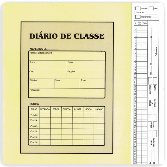 O Diário de Classe Bimestral Amarelo da São Domingos é usado para registrar a frequência dos alunos e as notas obtidas.