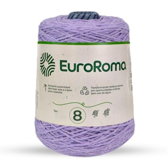 O Barbante EuroRoma N.8 600g - Lilás Claro da Eurofios oferece ainda mais resistência e volume para seus projetos artesanais. Composto por 85% de algodão e 15% de outras fibras, é uma opção sustentável e de alta qualidade para trabalhos que exigem firmeza e acabamento marcante. Ideal para crochê, tricô, macramê, tear, tapeçaria e outras técnicas manuais.