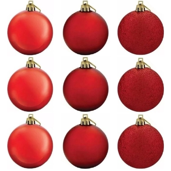 Bola de Natal 6cm Vermelha Mista c/9 Magizi
