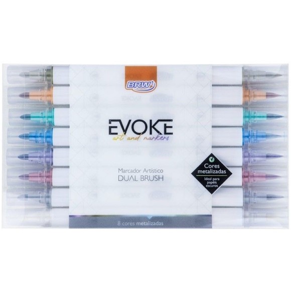 Brush Pen 8 Cores Dual Evoke Metalizadas BRW
