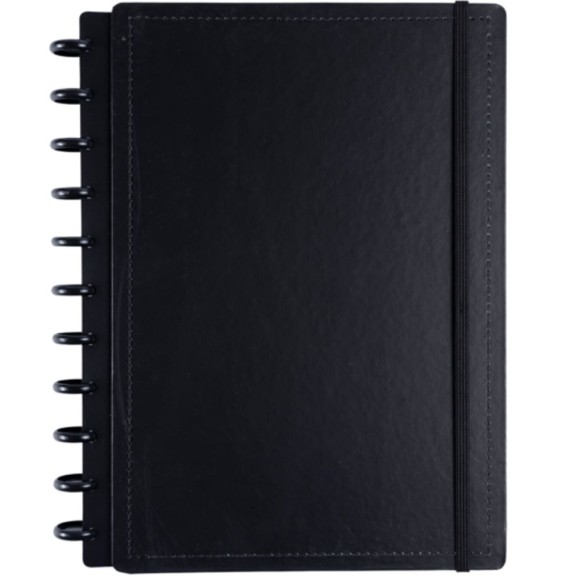 O Caderno de Disco All Black Grande da Diskô é a escolha ideal para quem busca um estilo moderno e sofisticado ao organizar suas anotações. Com capa dura resistente e um design minimalista, ele combina funcionalidade e elegância em um único produto.