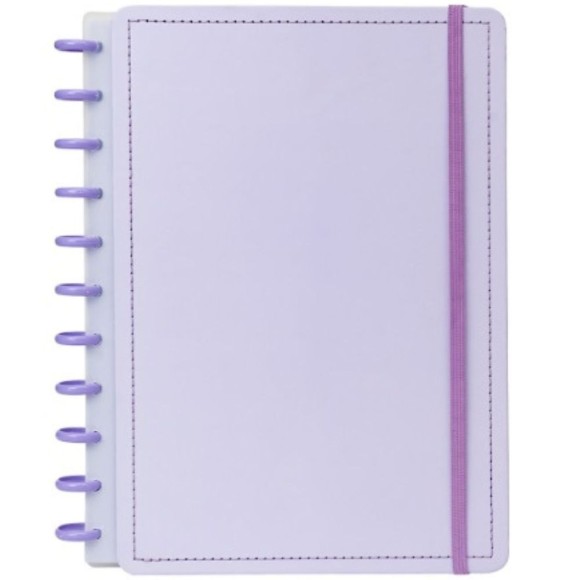 • Temática Lilás: Capa dura, discos e elástico na cor lilás, criando um visual coeso e moderno.