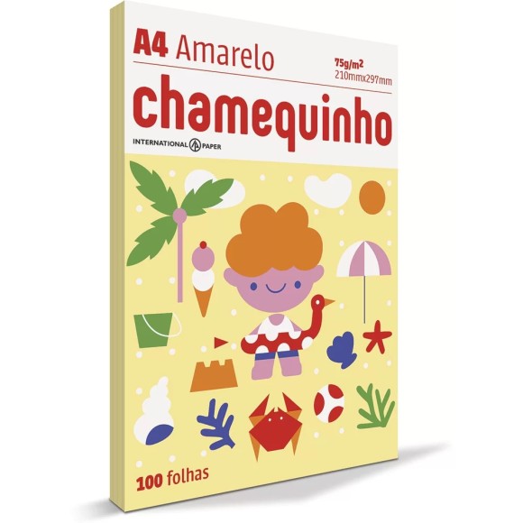 Papel Sulfite A4 Amarelo 75g 100 Folhas Chamequinho Chamex