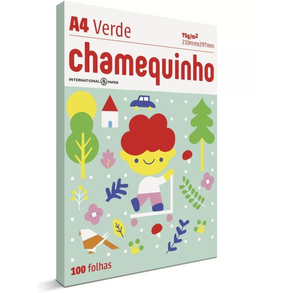 Papel Sulfite A4 Verde 75g 100 Folhas Chamequinho Chamex