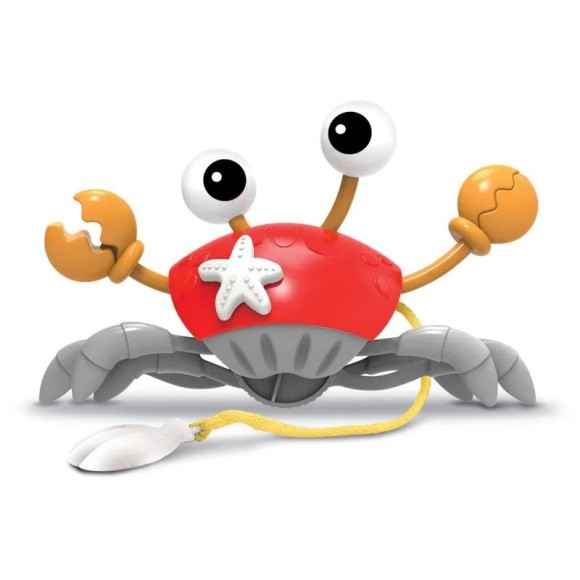 Cacá, o caraguejo, cheio de atividades ! Todo engraçado, puxando a cordinha ele sai andando, mexendo as perninhas. Olhinhos e garras sobem e descem.