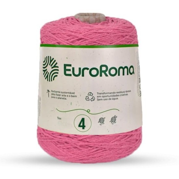 O Barbante EuroRoma N.4 600g - Rosa da Eurofios é ideal para quem busca qualidade, sustentabilidade e versatilidade em seus trabalhos manuais. Produzido com 85% de algodão e 15% de outras fibras, é perfeito para diversas técnicas como crochê, tricô, macramê, tear, tapeçaria e artesanato em geral, agregando beleza e resistência às suas criações.