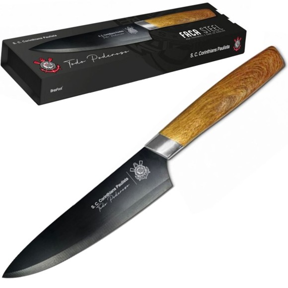 A Faca Steel Premium - Corinthians da Brasfoot é o item indispensável para quem une paixão pelo time e bom gosto em utensílios de qualidade. Produzida em aço inoxidável de alta resistência, possui acabamento elegante, lâmina personalizada com o logo e o nome do Corinthians e cabo ergonômico que garante firmeza e segurança no manuseio. Com 31 cm de comprimento, acompanha um case de luxo exclusivo do clube, tornando-se uma opção sofisticada para uso em churrascos, refeições especiais ou como presente para torcedores que valorizam estilo e funcionalidade.