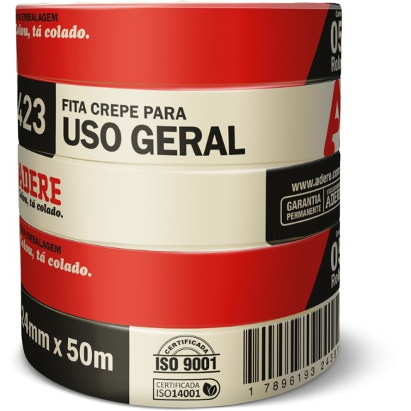 A Fita Crepe Branca 24mm x 50m - Pacote com 5 rolos da Adere é uma solução versátil e de alta qualidade para diversas aplicações. Fabricada com papel crepado tratado e adesivo à base de borracha e resina, oferece excelente aderência e facilidade de uso. Ideal para trabalhos escolares, fechamento de pacotes leves, reforço de embalagens, fixação de papéis ou plásticos, além de ser útil em ambientes domésticos, de escritório e em pintura imobiliária.