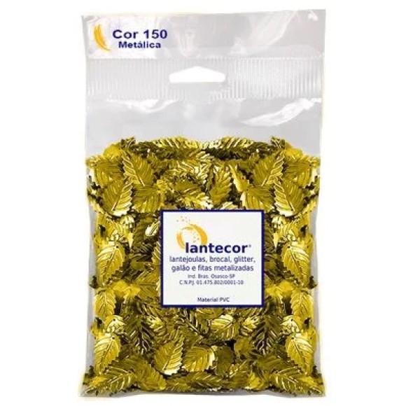 A Folha Pequena Metalizada Ouro da Lantecor são lantejoulas em formato de folha com furo lateral. As cores metálicas tem excelente qualidade, e seu acabamento reflete como um espelho, deixando o produto com alto grau de brilho e sofisticação.