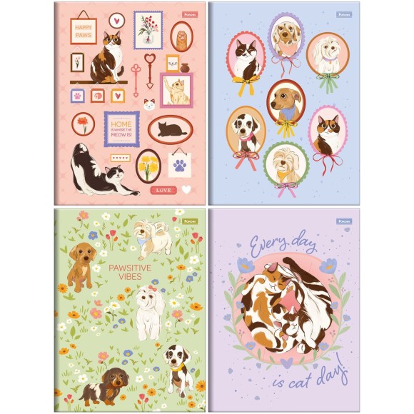 O Caderno Brochura Smoogies 80 Folhas da Foroni traz toda a fofura e alegria dos pets para o seu dia a dia. Com quatro opções de capa exclusivas, ilustradas com gatos e cães superdivertidos, ele é perfeito para quem ama animais e quer sentir a companhia deles até na hora dos estudos.
