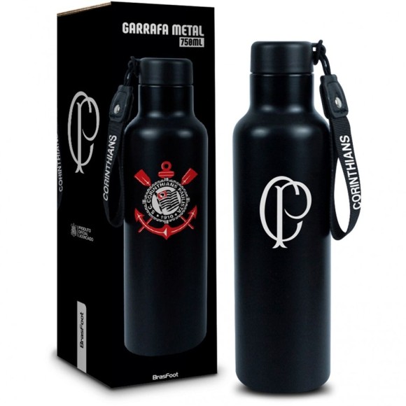 • Design oficial do Corinthians: Garrafa preta com o escudo do time em destaque, perfeita para demonstrar sua paixão pelo Timão.