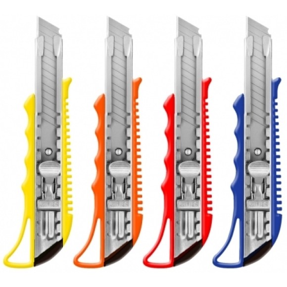 O Estilete Metálico Largo 18mm Profissional da Gatte possui trava de segurança e quebrador de lâminas, seu corpo é fabricado em plástico e sua lâmina em aço.