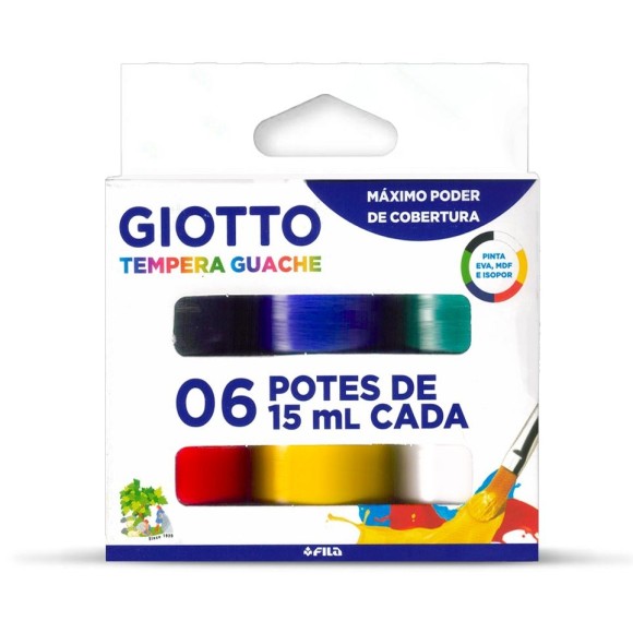O Tempera Guache 6 Cores da Giotto é perfeito para atividades escolares e artísticas, oferecendo cores vibrantes e excelente cobertura. Desenvolvido para crianças a partir de 3 anos, é ideal para pintura com pincel em diversas superfícies, como papel, papel cartão, cartolina e E.V.A. Sua fórmula atóxica garante segurança, enquanto a composição de alta qualidade proporciona resultados brilhantes e duradouros.