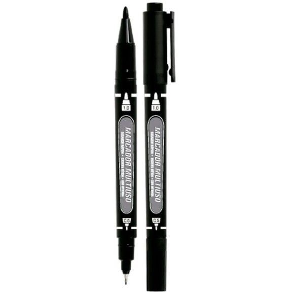 Marcador Permanente Multiuso Ponta Dupla MM-100 Preto Gramp Line