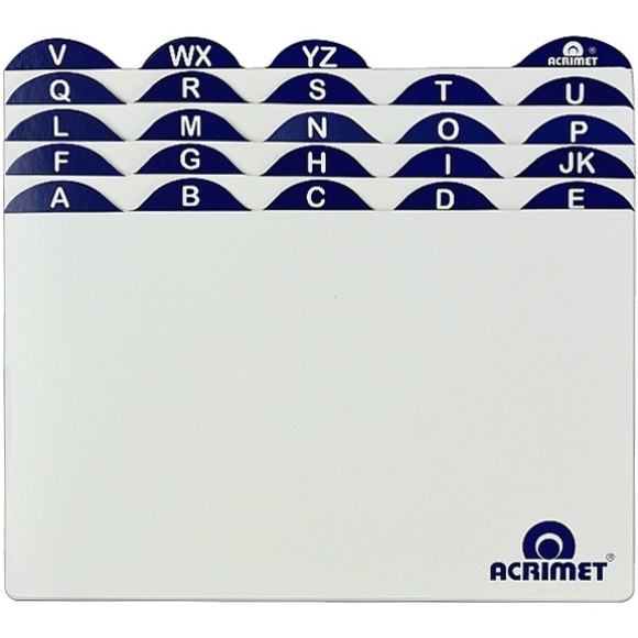O Índice A/Z Para Fichas 6"X9" da Acrimet é fabricado em papel triplex 300gr na cor branca. Ideal para arquivo de fichário de mesa. As projeções possuem abas de A-Z identificadas na cor azul para organizar os arquivos em ordem alfabética.