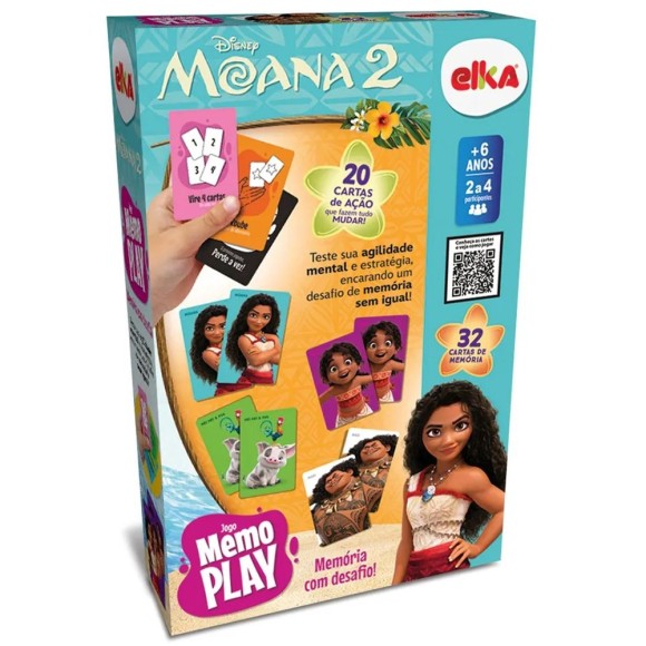 O Jogo da Memória Moana 2 Memo Play da Elka leva a clássica brincadeira de memória a um nível totalmente novo! Com 32 cartas de memória e 20 cartas de ação, o jogo combina desafios de estratégia, agilidade mental e momentos de pura diversão, ideal para crianças a partir de 6 anos.