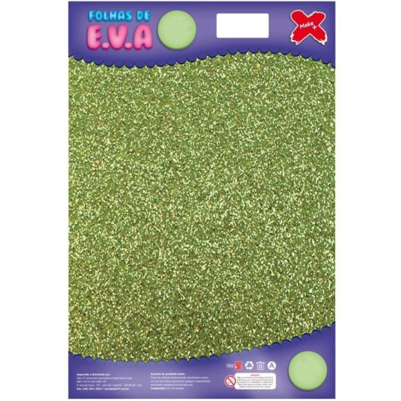 A Placa de EVA com Glitter Verde Claro da Make+ é ideal para ser utilizado em trabalhos decorativos, escolares e artesanato. Por conter características de borracha, também é utilizado como amortecedor de impactos. Pacote com 5.