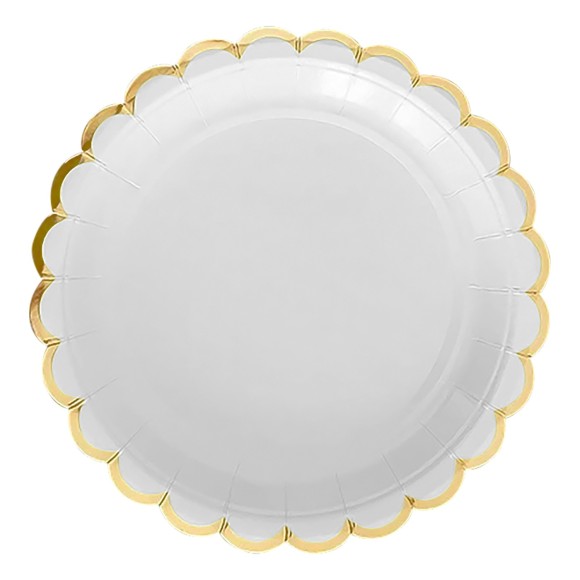Pratos de Papel 18cm - Metálico Luxo Branco c/8 Make+