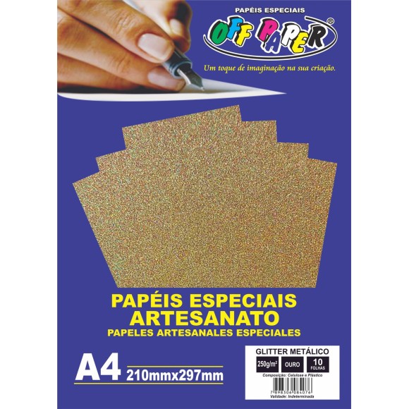 Papel Glitter Metálico A4 Ouro 250g 10fls Off Paper