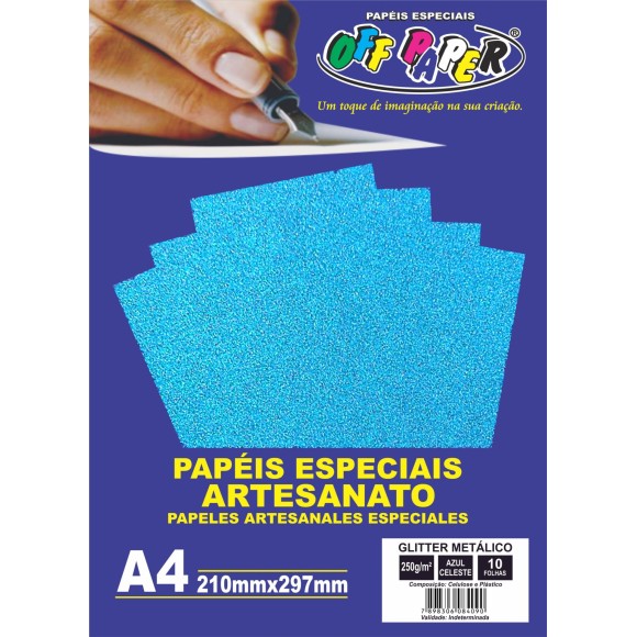 Papel Glitter Metálico A4 Azul Celeste 250g 10fls Off Paper