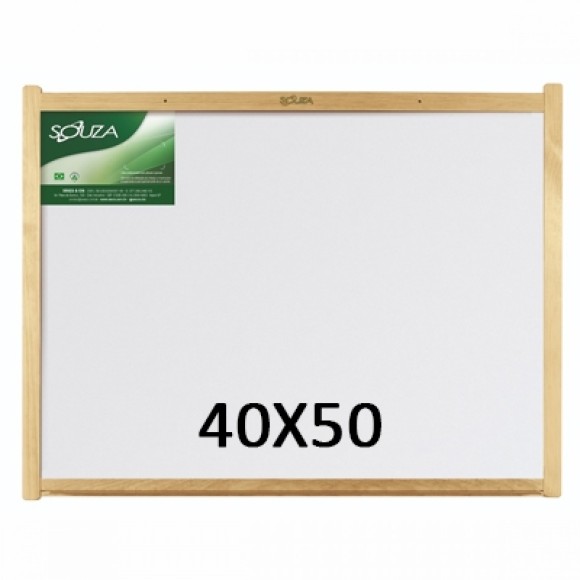 O Quadro Branco Standard 40x50 da Souza é feito a partir de uma chapa duratree ou mdf de 3mm que recebe uma pintura branca e depois uma camada de verniz uv que ira permitir a escrita com marcadores próprios para quadro branco tipo wbm-7 ou similar em que a tinta é removida à seco com facilidade. Seu acabamento é com moldura de madeira pinus que recebe uma camada de seladora que vai proporcionar um acabamento mais sofisticado e vai dar maior durabilidade a moldura. Este produto é recomendado para uma baixa e média intensidade de uso, em sala de aula com uso intensivo sua vida útil estimada é de 1 ano.