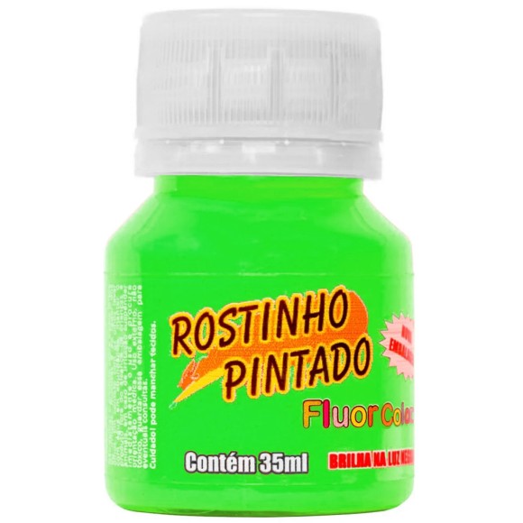 A Tinta Facial Liquida Verde Limão Fluorescente 35ml da Rostinho Pintado é ideal para pinturas faciais.