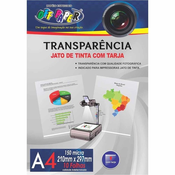 Transparência A4 Jato de Tinta com Tarja 150g 10 Folhas Off Paper