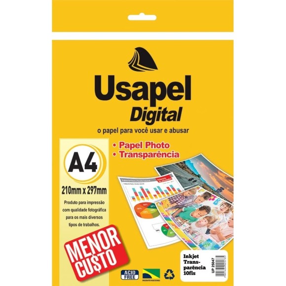Transparência A4 Jato de Tinta Sem Tarja 10 Folhas Usapel